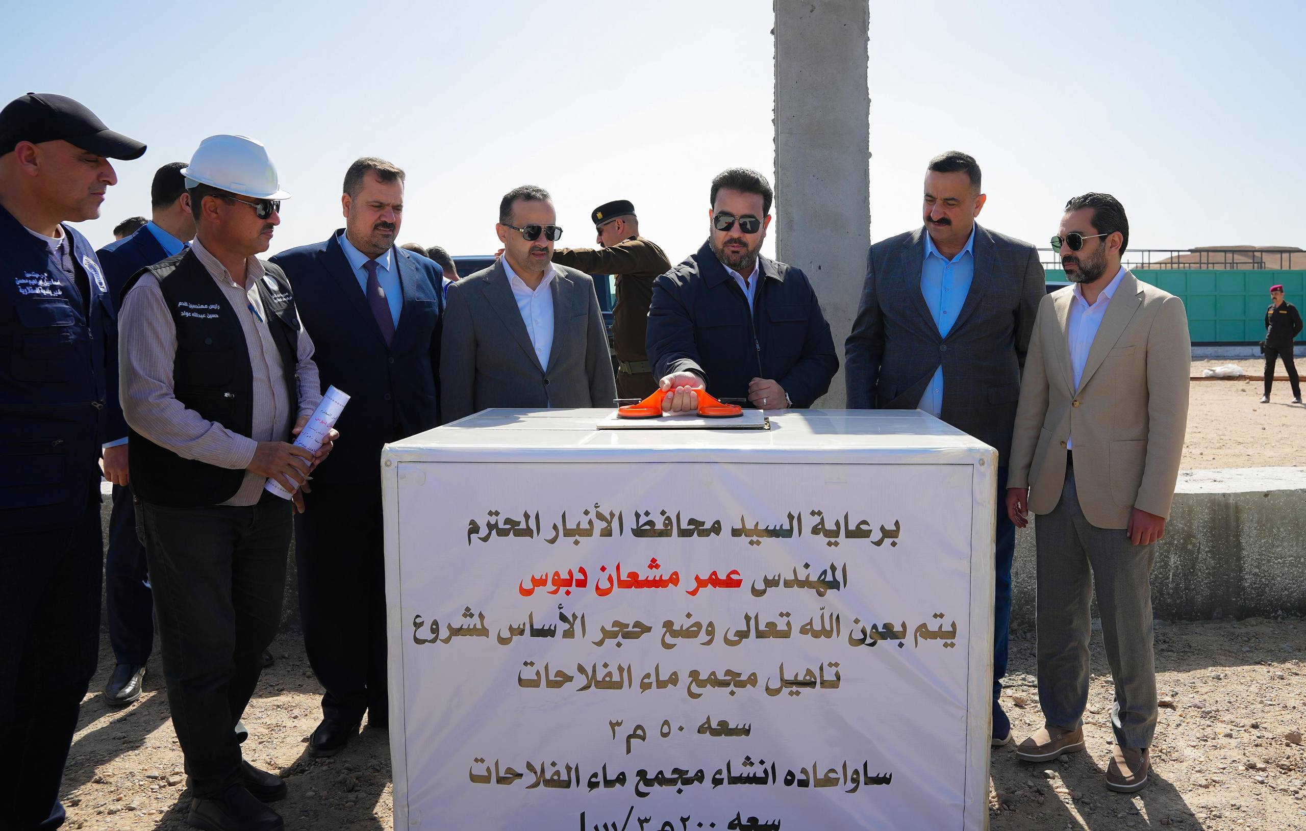 محافظ الأنبار يضع حجر الأساس لمشروع تأهيل مجمع ماء الفلاحات في ناحية الصقلاوية .